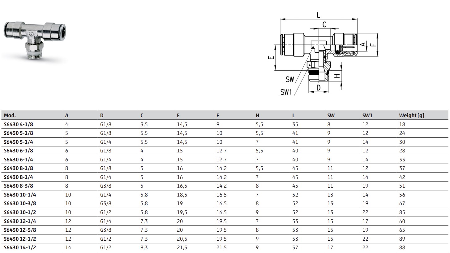 Fitting S6430-12-1.2 (CAMOZZI)